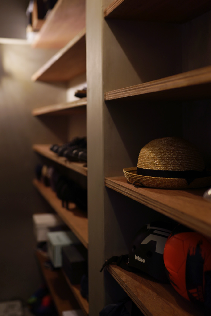 築45年以上のヴィンテージマンションの一室。 もともとフルスケルトンだった空間に家族の思いをプランニングしました。 玄関とリビングを隔てるガラスの格子壁がマンション特有の玄関の暗さと閉鎖感を和らげます。開放性と回遊性、無機質な中でも素材が持つ存在感を感じられる空間を目指しました。